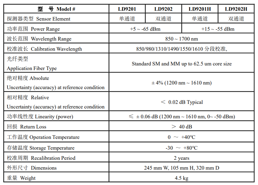 LD9202 双通道光功率计具有优良的性能,经济实用,广泛适用